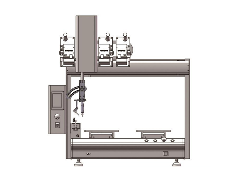 三送錫自動焊錫機可滿足同一元件的三個拼腳進行焊錫,既解決了三點間距過小,同時提高產品的生產效率,主要適合的